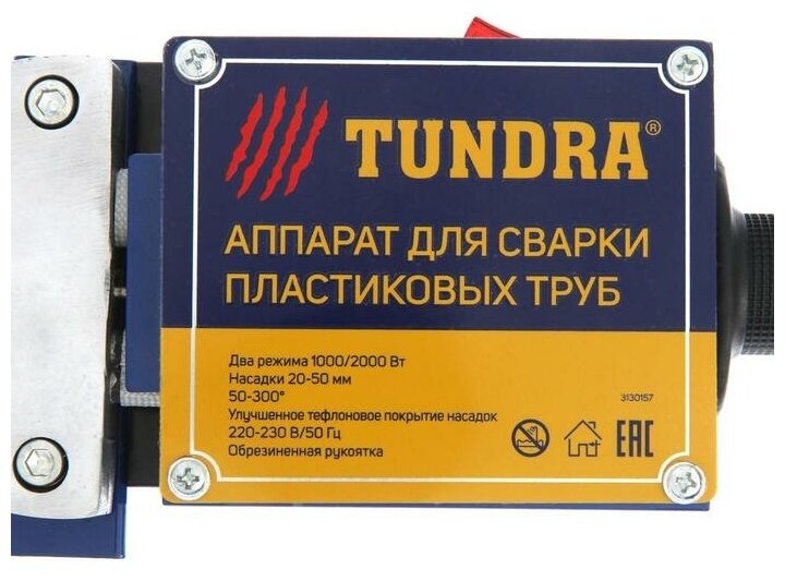 Аппарат для сварки пластиковых труб тундра, 1000/2000 Вт, комплект насадок 20-50 мм, 50-300°