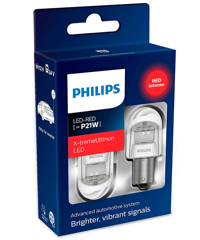 PHILIPS 11498XURX2 P21W 12V Лампа X-treme Ultinon LED red, 2шт. в пласт.коробке