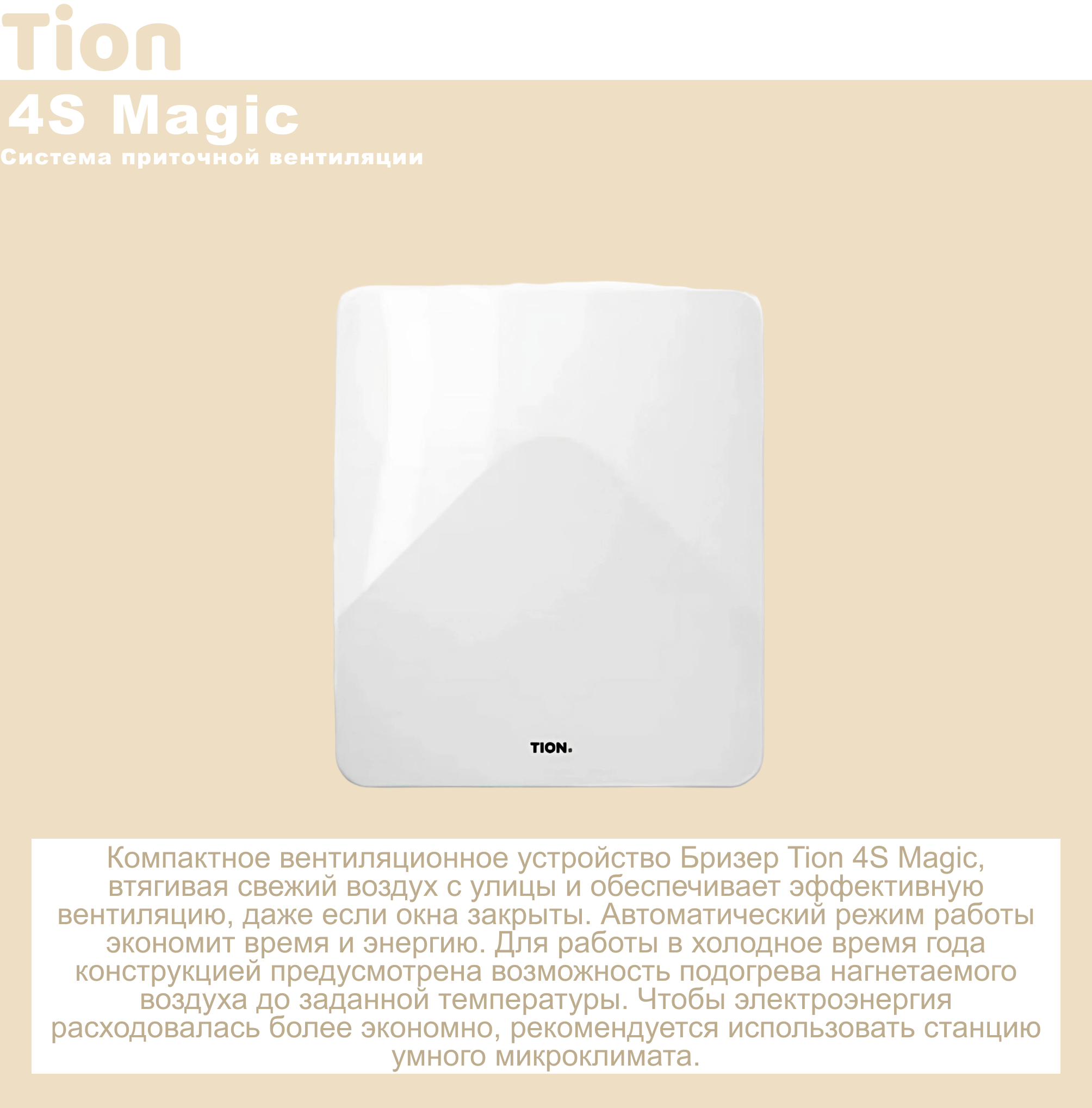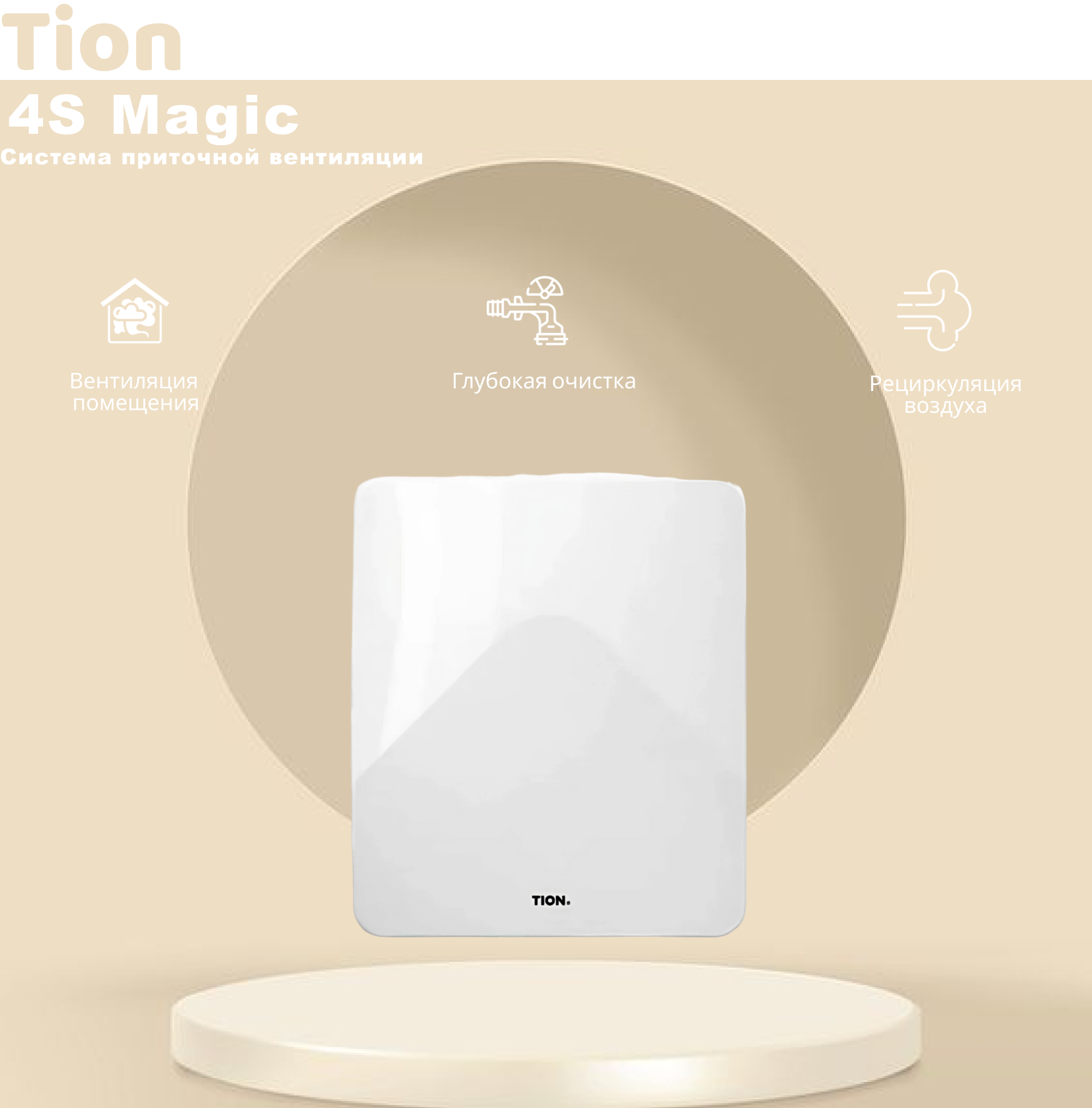 Приточный очиститель воздуха Бризер Tion 4S Magic (4S Family + базовая станция MagicAir) + подарок фильтр F5