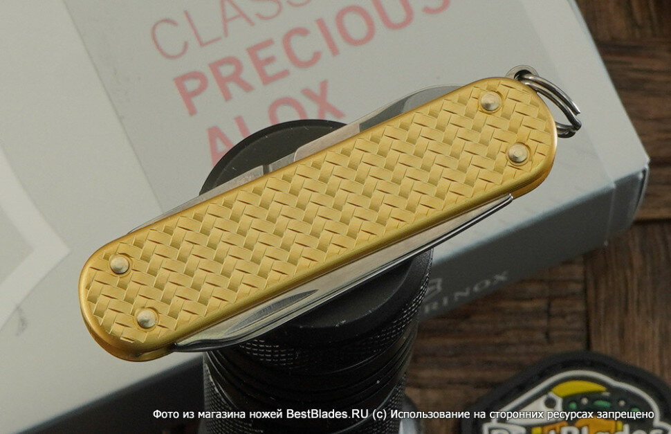 Ниже Вы можете прочитать отзывы на Нож перочинный Victorinox Classic Precious Alox (0.6221.408G) 58мм 5функц. золотистый подар.коробка, ознакомится с подробными характеристиками, посмотреть интересные обзоры и фотографии на Нож перочинный Victorinox Classic Precious Alox (0.6221.408G) 58мм 5функц. золотистый подар.коробка.