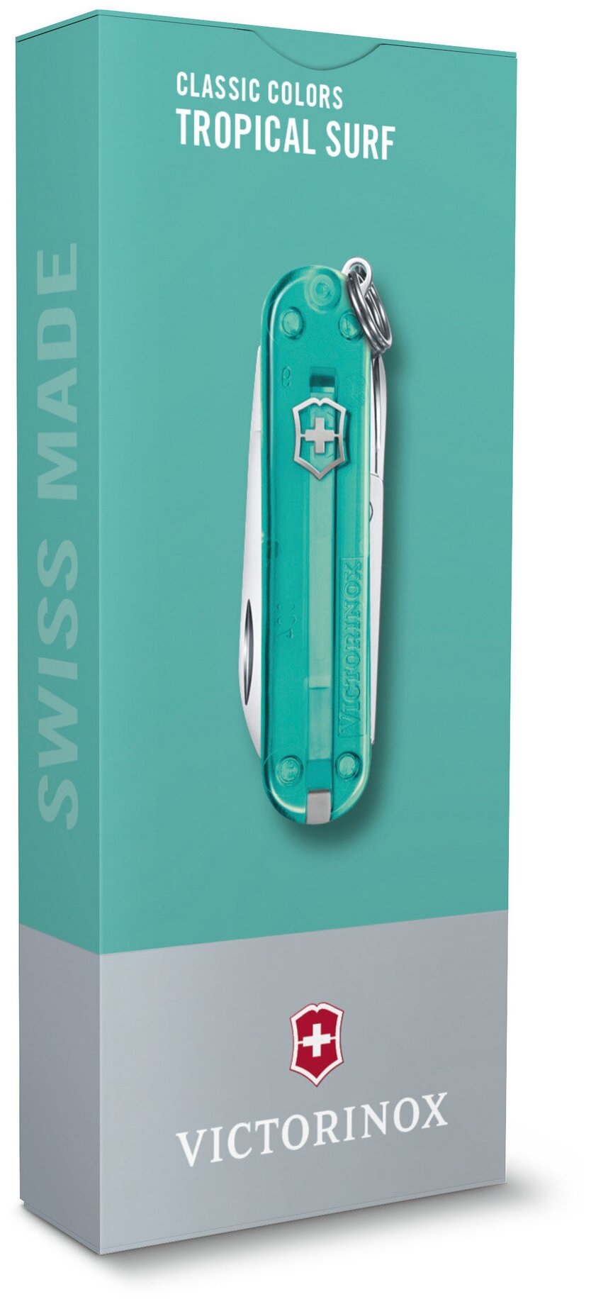 Нож-брелок Victorinox Classic SD Colors Tropical Surf, 58 мм, 7 функций, полупрозрачный бирюзовый