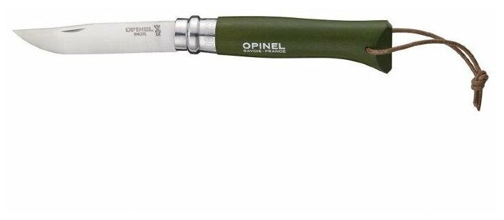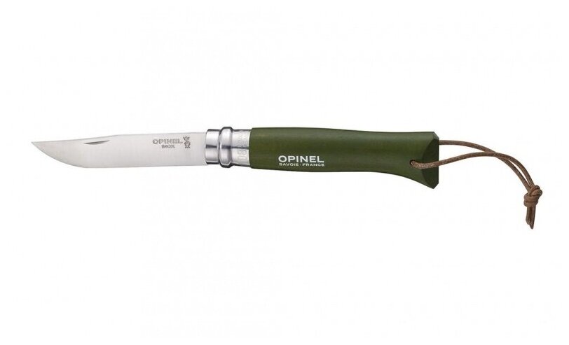Купить Нож Opinel №8 Trekking, нержавеющая сталь, кожаный темляк, хаки