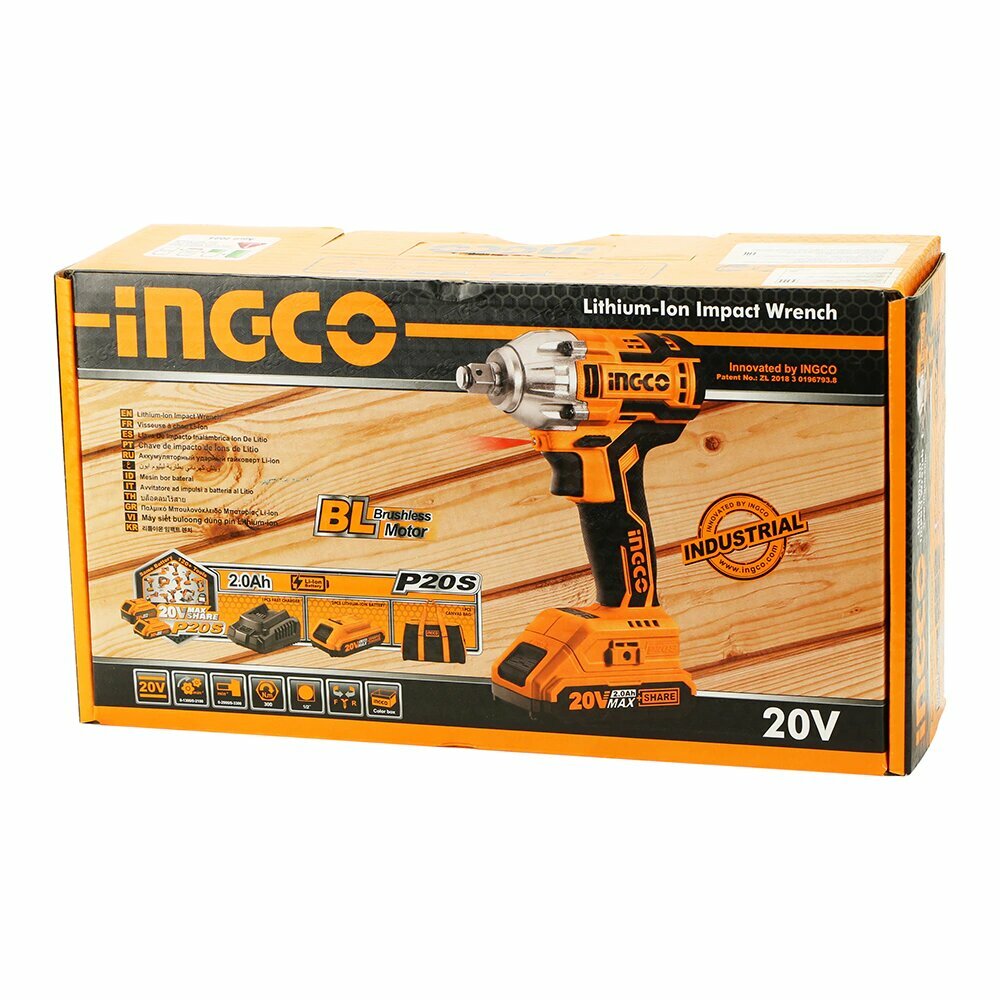 Гайковерт аккумуляторный бесщеточный ударный 20В 1/2 INGCO Industrial CIWLI2001