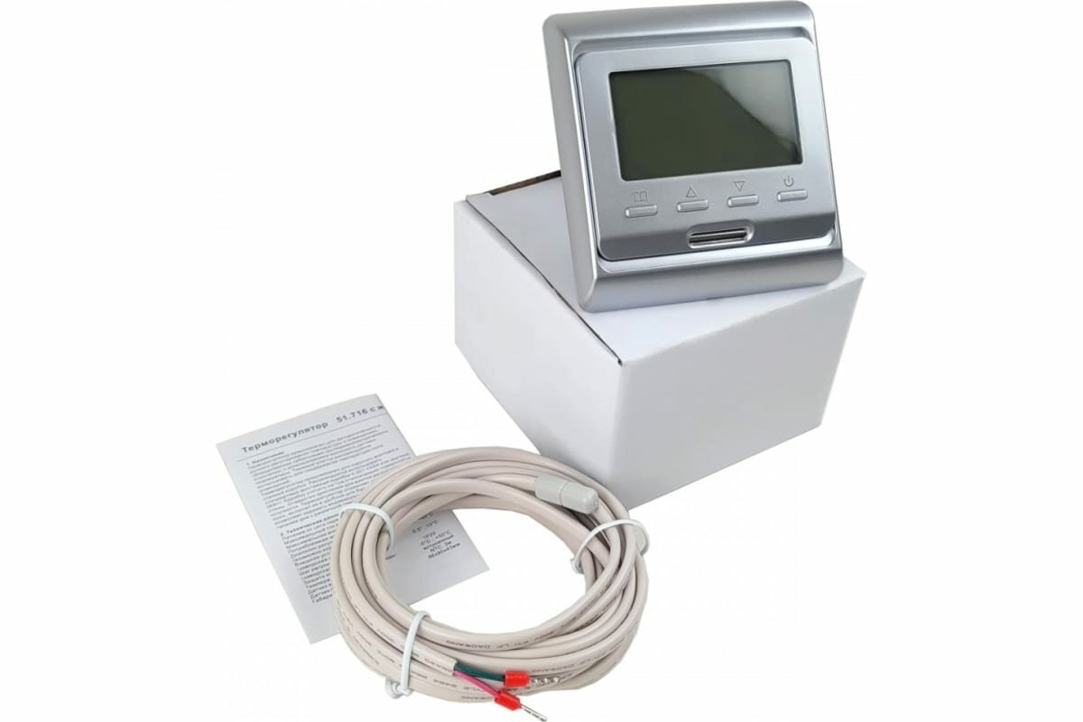 Терморегулятор программируемый Е51, цвет - серебрянный / ЖК дисплей, датчики пола и воздуха / для всех типов теплых полов