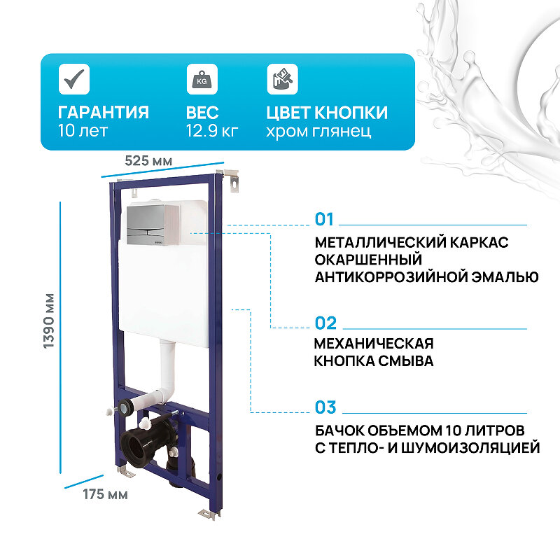 Berges Wasserhaus Инсталляция Novum F3, для подвесного унитаза в комплекте с кнопкой хром глянец, 040253_NEW