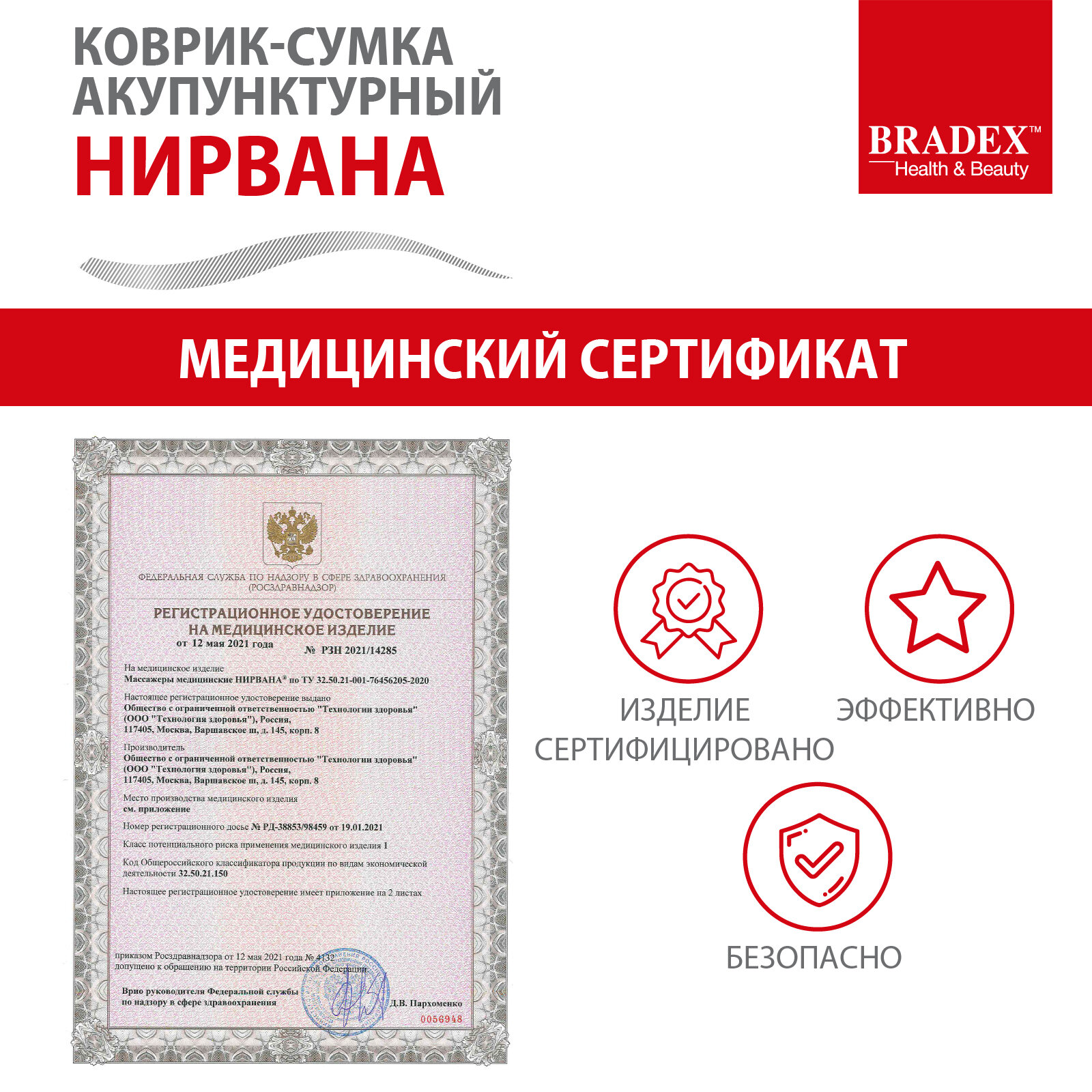 Массажный коврик BRADEX KZ 0677 нирвана коврик-сумка акупунктурный интересное: