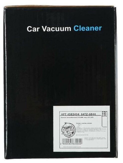 Пылесос автомобильный CYCLONE TURBO, беспроводной, 100Вт, 12В, черный 4583494 .