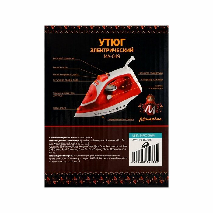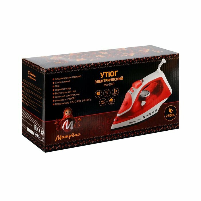Ниже Вы можете прочитать отзывы на Утюг Матрена МА-049 (10) бир 2300Вт, керамич подошва, самоочистка ., ознакомится с подробными характеристиками, посмотреть интересные обзоры и фотографии на Утюг Матрена МА-049 (10) бир 2300Вт, керамич подошва, самоочистка ..