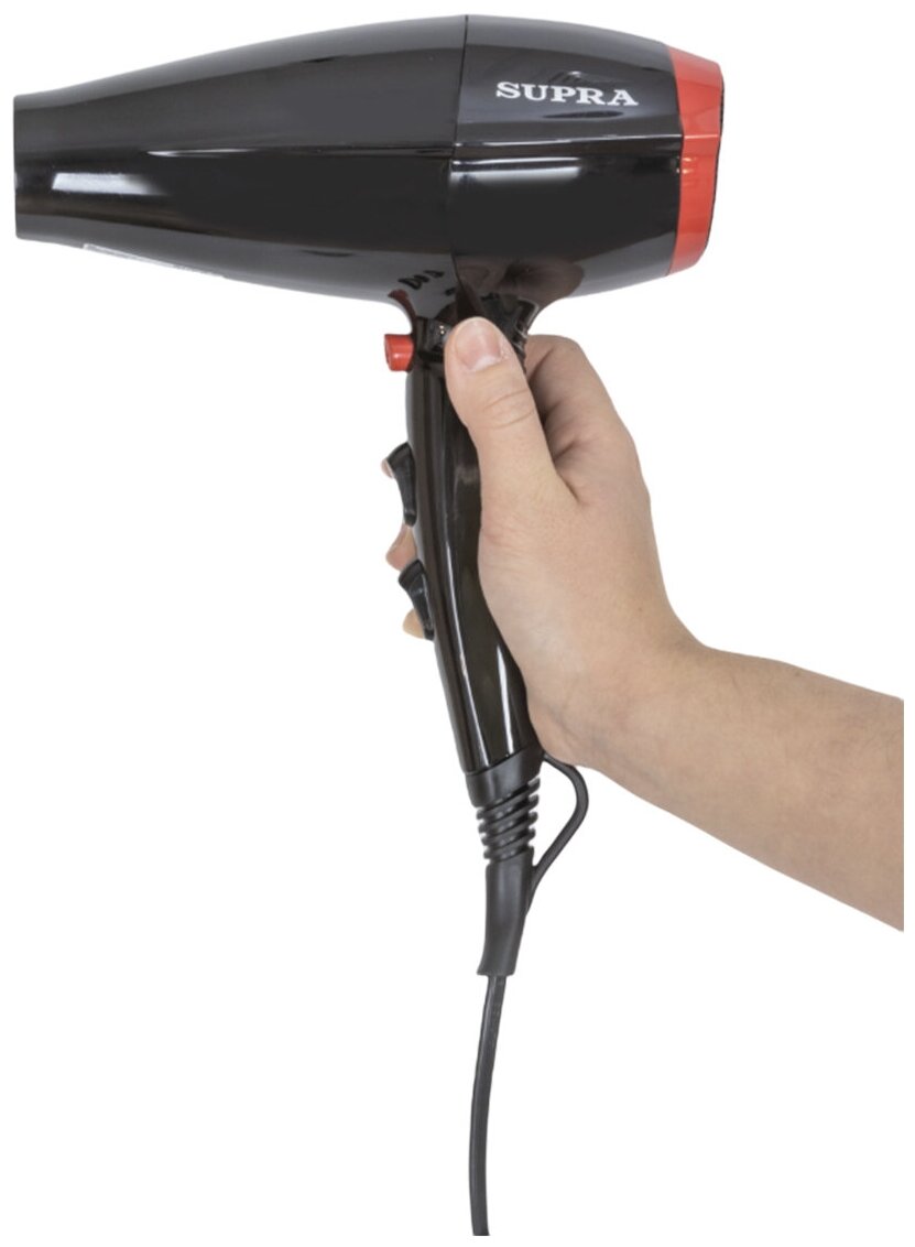 Фен для волос Supra с функцией холодного воздуха и концентратором, 2 скорости, 3 режима нагрева, 2000 Вт, красный, черный SUPRA PHS-2017M интересное: