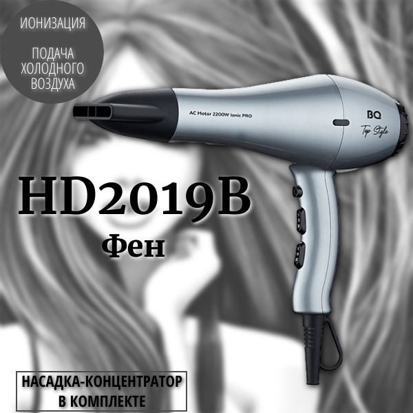 Фен BQ HD2019B 2200 Вт, 2 скорости, серый