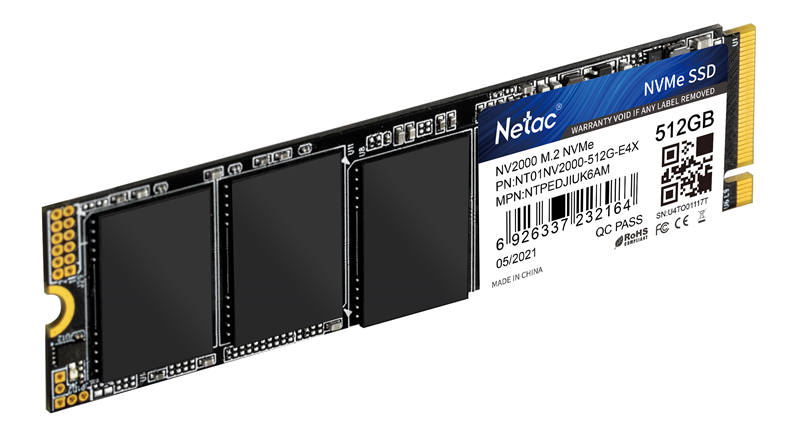 Внутренний SSD-накопитель Netac NV2000 512Gb, M.2 2280, PCIe Gen3 x4, 3D NAND, 300 TBW, Черный NT01NV2000-512-E4X