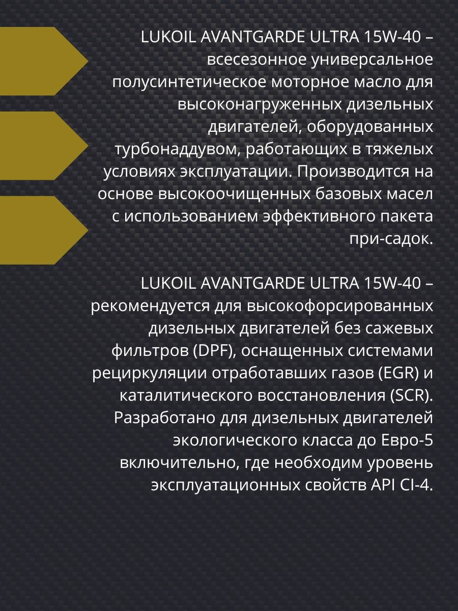 Масло л авангард ультра 15w40, ci-4/sl 5l моторное (полусинт), lukoil, 1552345