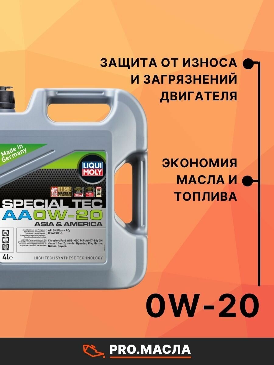 Liqui moly Liquimoly 0w20 Special Tec Aa (4l)_масло Мотор.! Син Api Sn, Ilsac Gf 5/Ford M2c 946-A, Suzuki