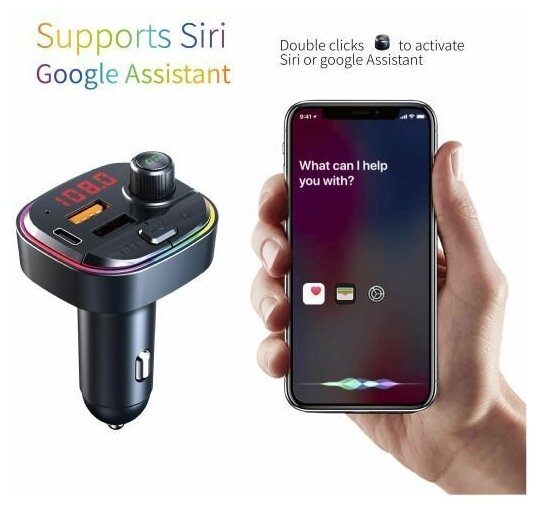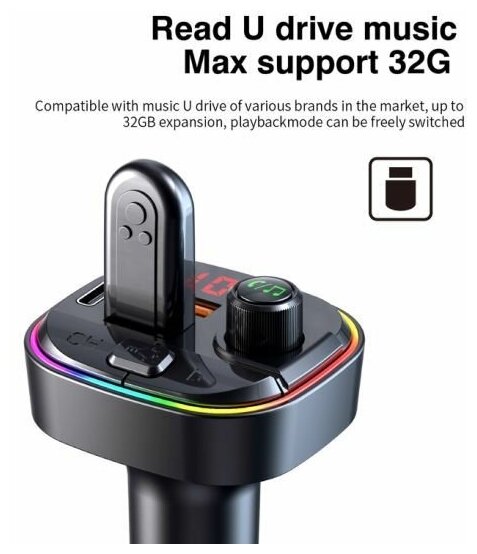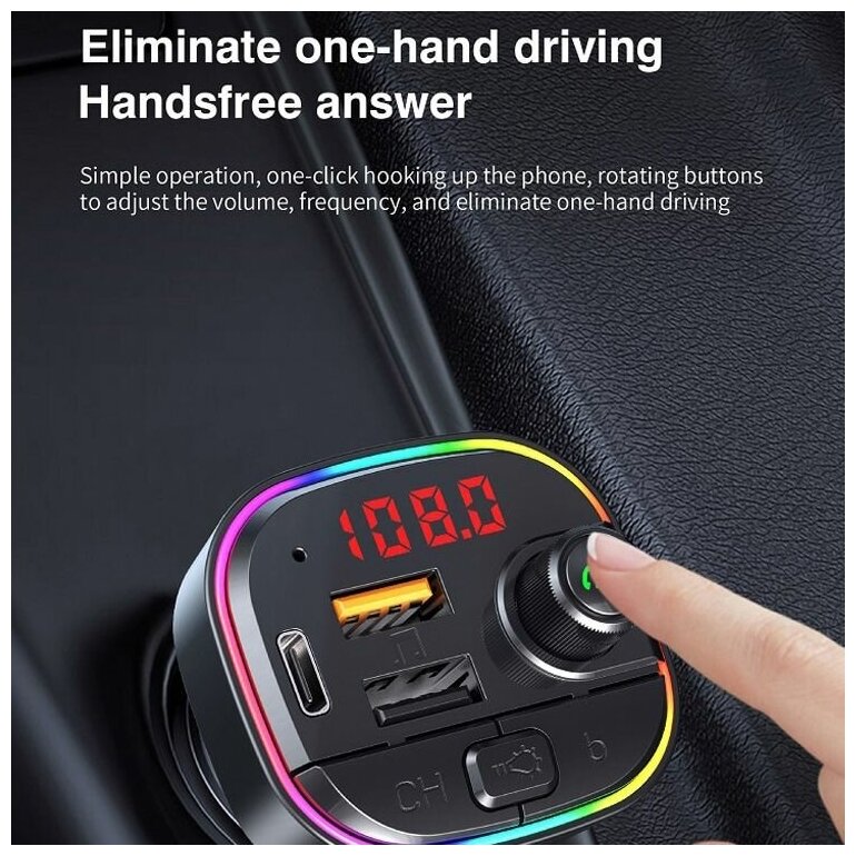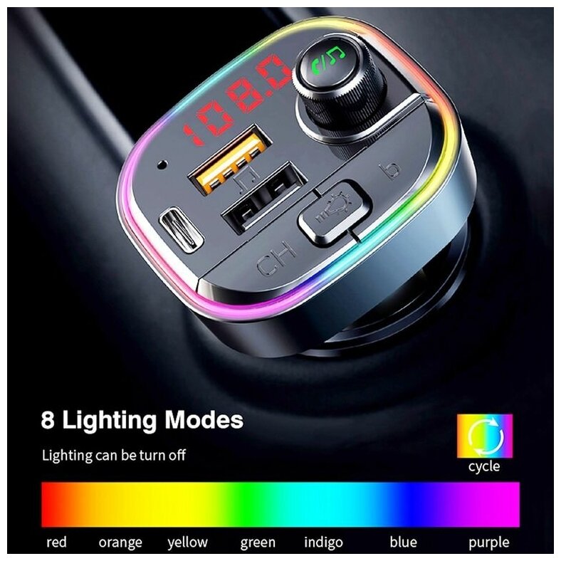 FM трансмиттер Bluetooth с RGB подсветкой / Модулятор автомобильный / Адаптер быстрой зарядки с 3 USB 3.1 A TDS-13