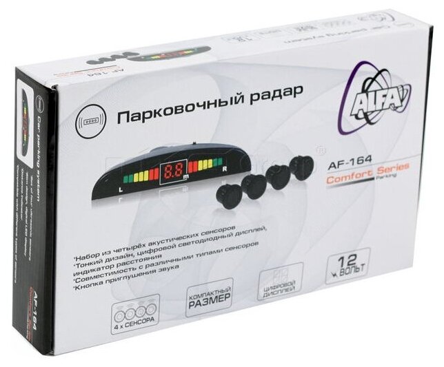 Парковочный датчик ALFA AF-164 Black 4 сенсора интересное: