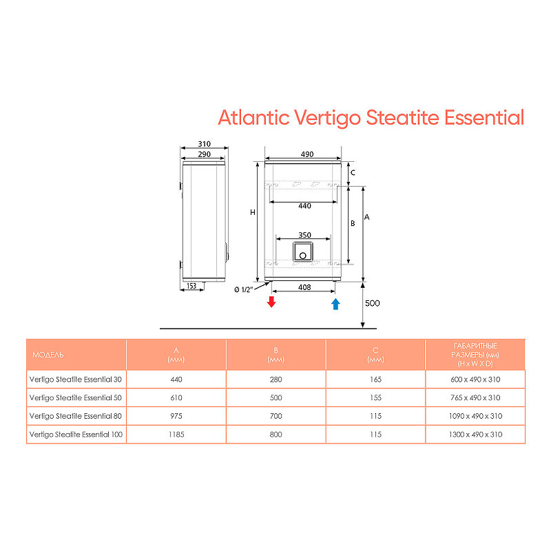 Электрический водонагреватель Atlantic Vertigo Steatite ESSENTIAL 50 831193
