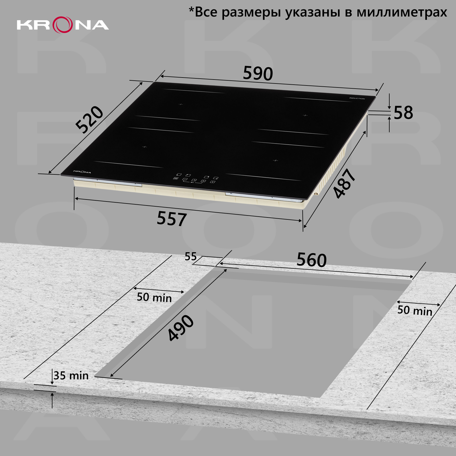 Индукционная варочная поверхность KRONA REMO 60 BL, черный (КА-00002181)