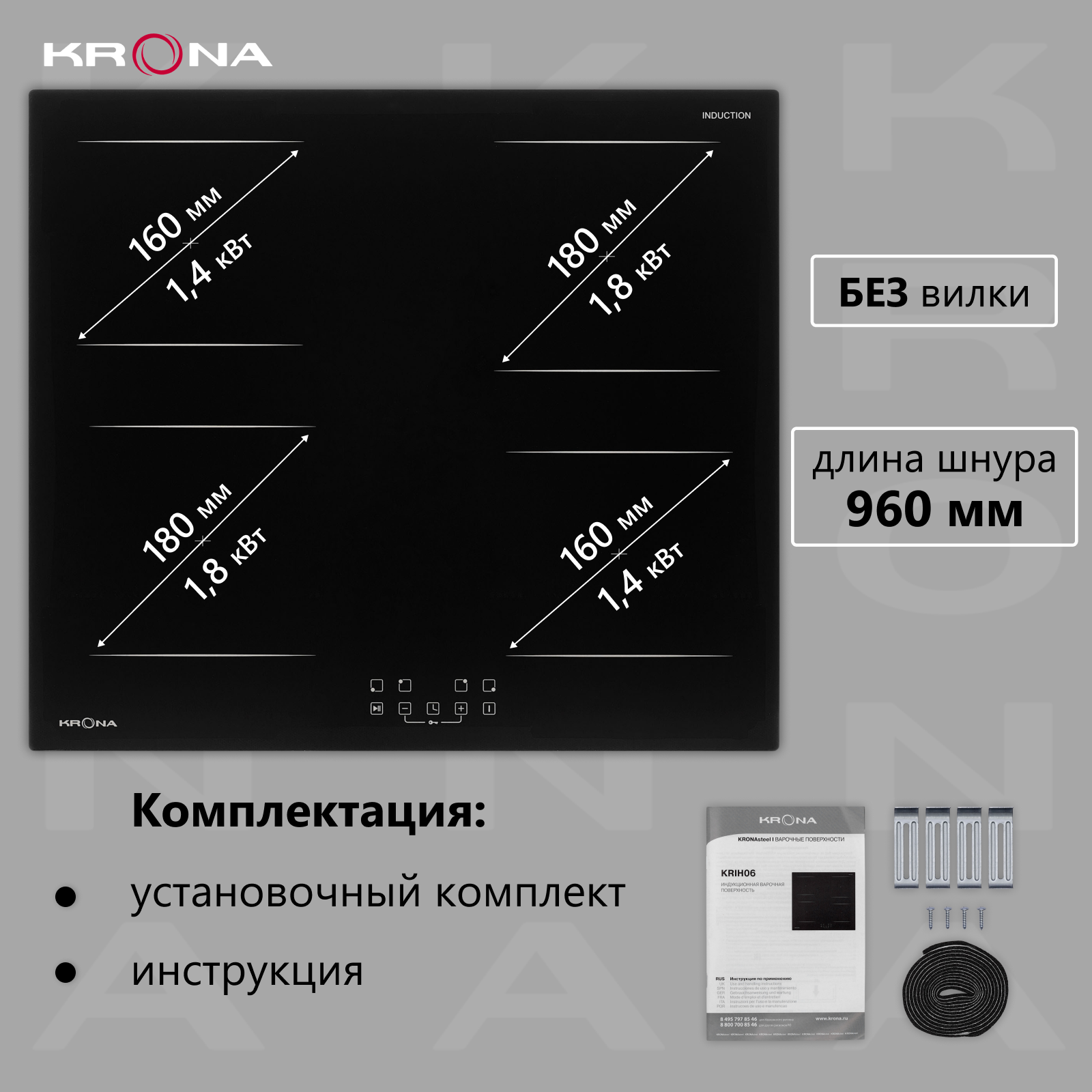 Варочная поверхность KRONA REMO 60 BL встраиваемая индукционная черная