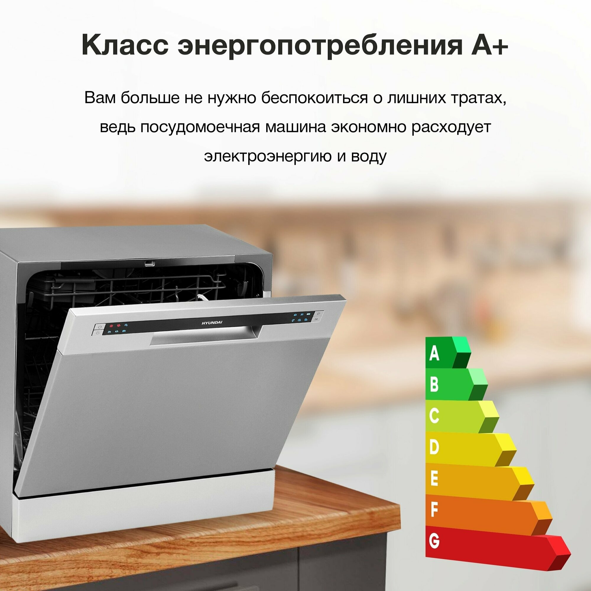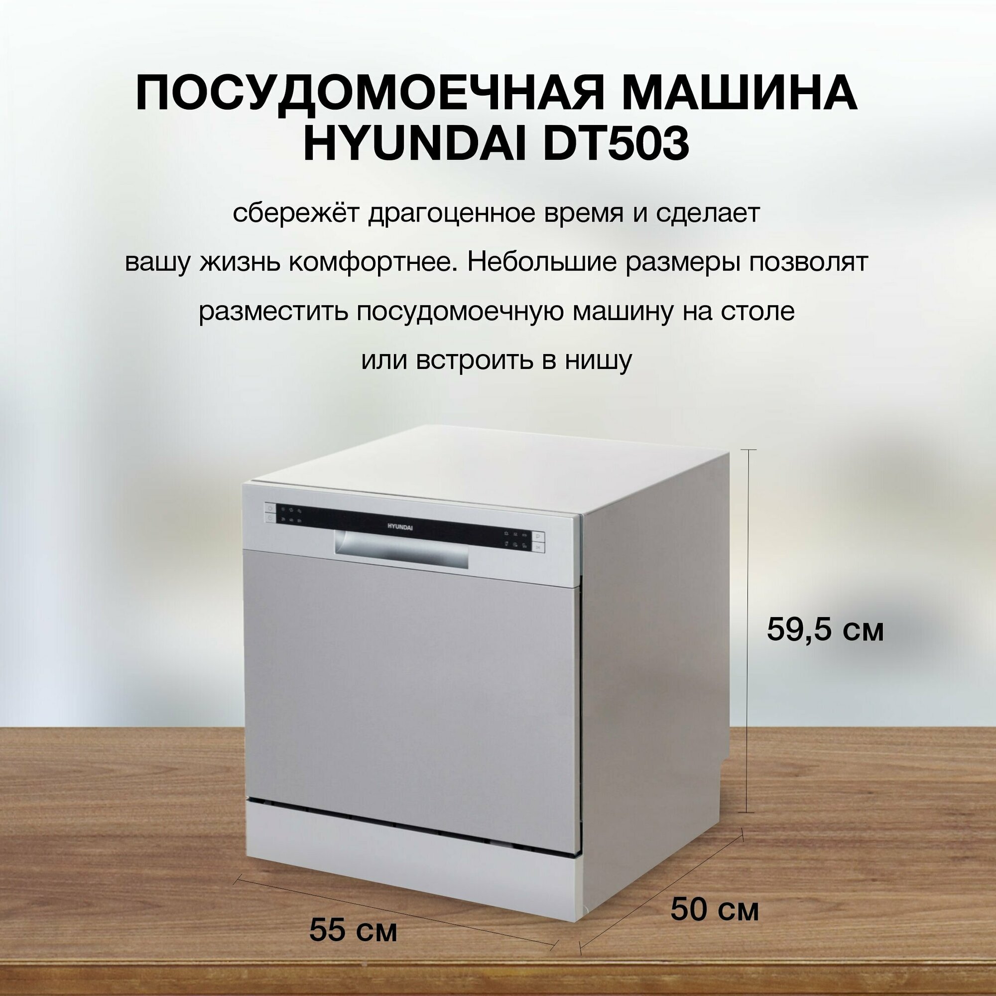 Посудомоечная машина Hyundai DT503, компактная, настольная, 55см, загрузка 8 комплектов, серебристая [dt503 серебристый]