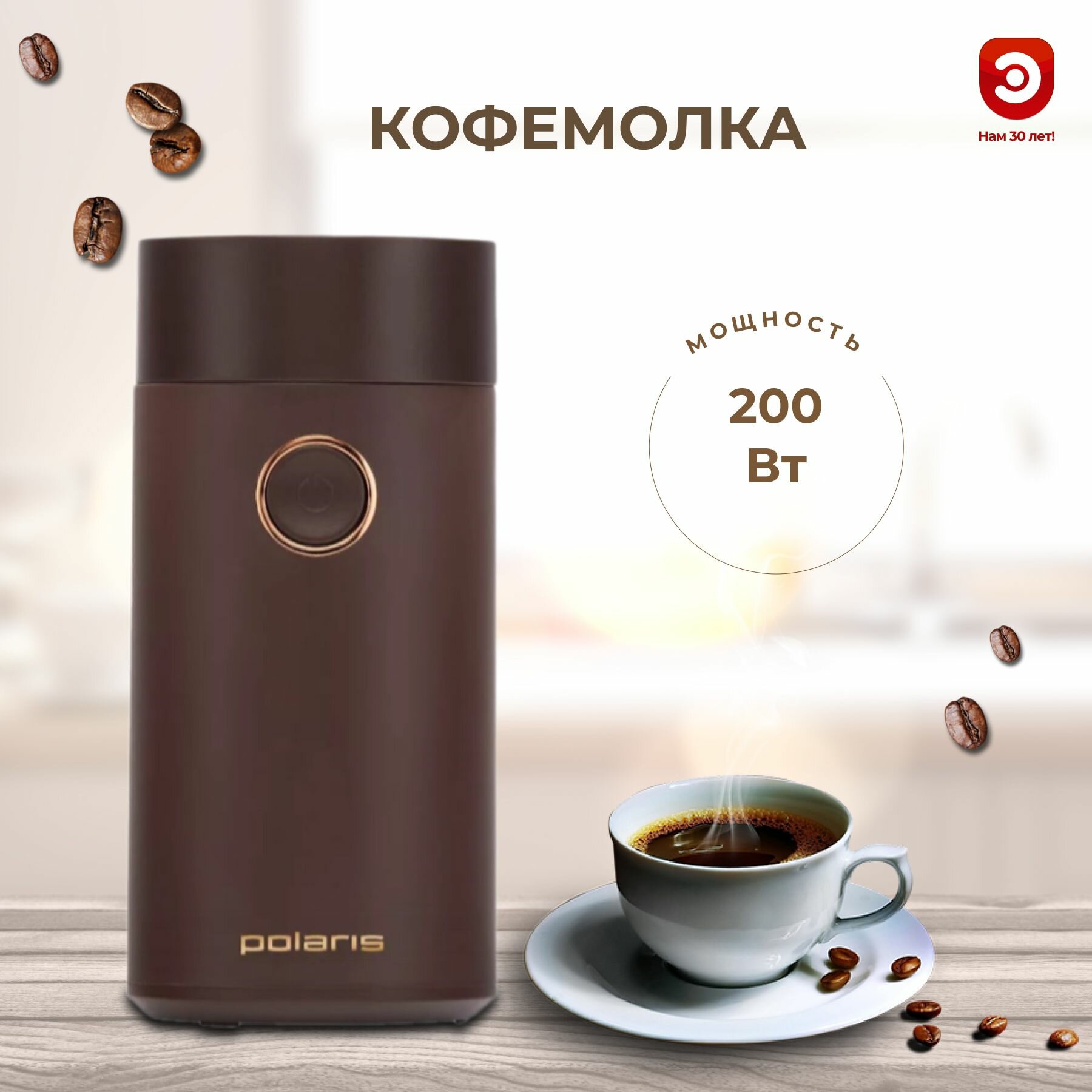 Кофемолка электрическая Polaris PCG 2014 с импульсным режимом работы, коричневый