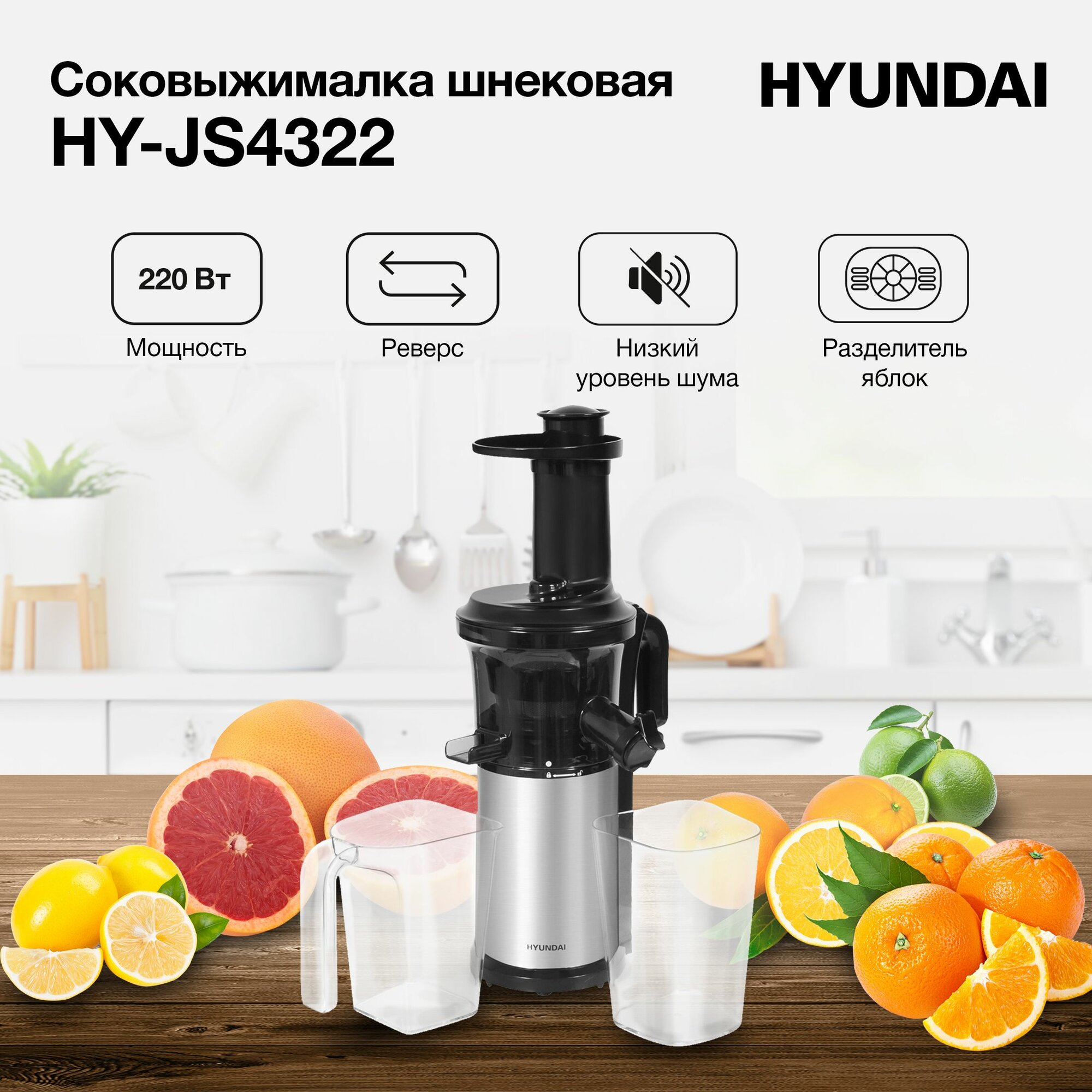 Соковыжималка Hyundai HY-JS4322, серебристый и черный