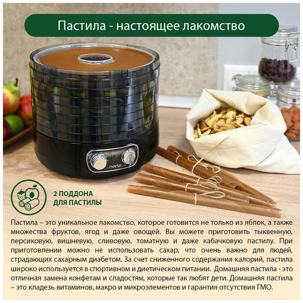 MARTA MFD-2072PS 9 поддонов-7+2 для пастилы темный обсидиан сушилка д/фруктов,овощей