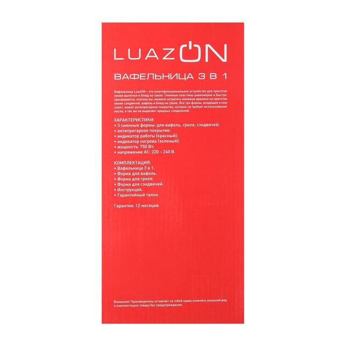 Купить Мультипекарь LuazON LT-06, 750 Вт, венские вафли/гриль, антипригарное покрытие, чёрный