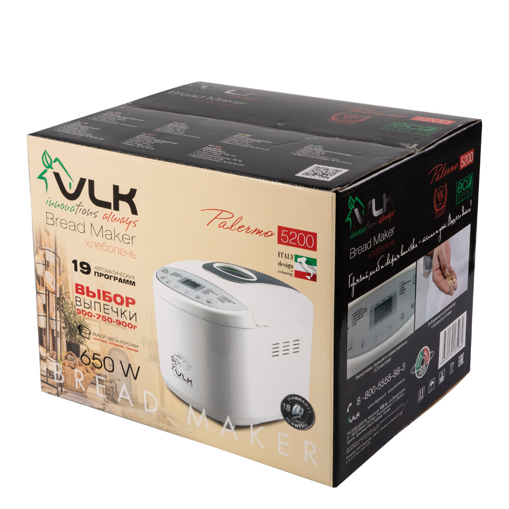 Хлебопечь электрическая VLK Palermo 5200, белый, мощность 650 Вт, вес выпечки 500/750/900 г, 19 прог .