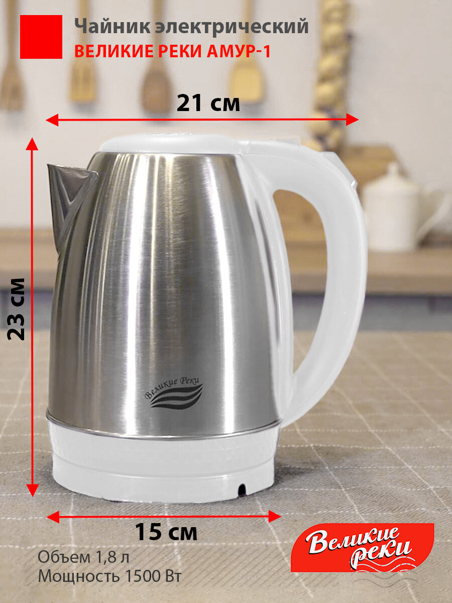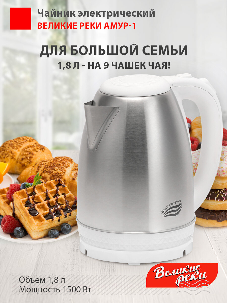 Купить Чайник электрический Великие реки Амур-1 белый, 1,8л, нержавейка