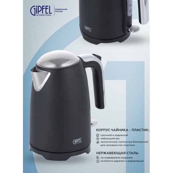 Чайник электрический GIPFEL ORCHID 50967 1,7 л черный интересное: