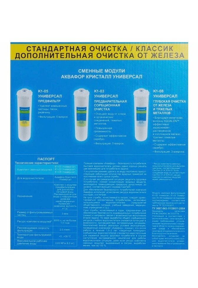 Набор картриджей Аквафор К5-К3-К8 Универсал для железистой воды интересное: