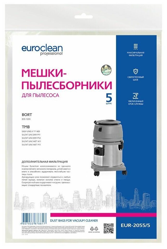 EUR-2055/5 Мешки-пылесборники Euroclean синтетические для пылесоса, 5 шт интересное: