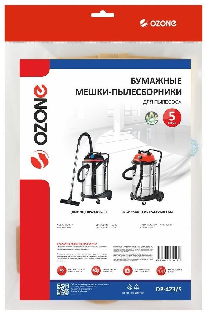OP-423/5 Мешки-пылесборники Ozone бумажные для пылесоса, 5 шт интересное: