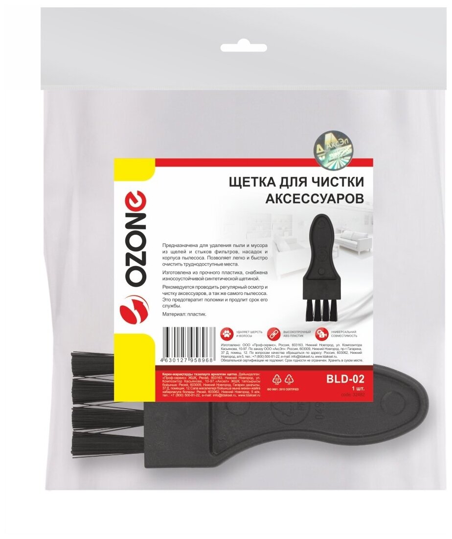 OZONE BLD-02 Щетка для чистки аксессуаров (фильтров, насадок, корпуса пылесоса), 1 шт.