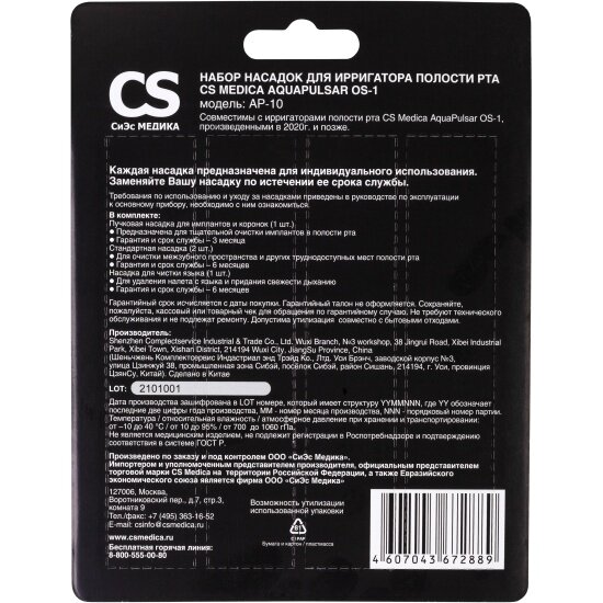 Насадки для ирригатора CS MEDICA AP-10 для ирригатора OS-1