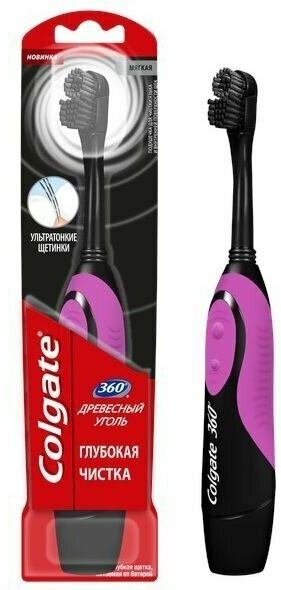 Электрическая зубная щетка Colgate 360 Sonic Древесный уголь на батарейках, мягкая жесткость