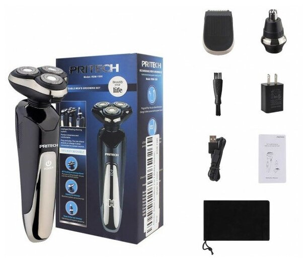 Аккумуляторная роторная бритва мощностью 5 Вт PRITECH RSM-1505 интересное:
