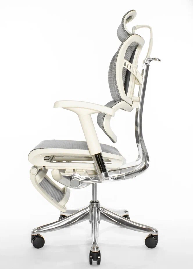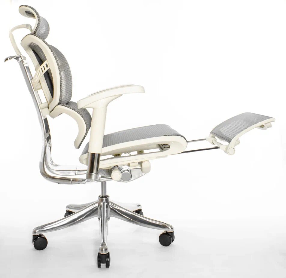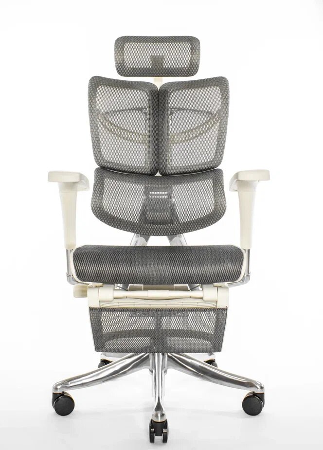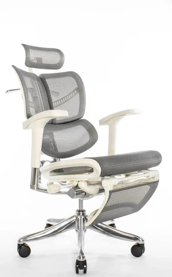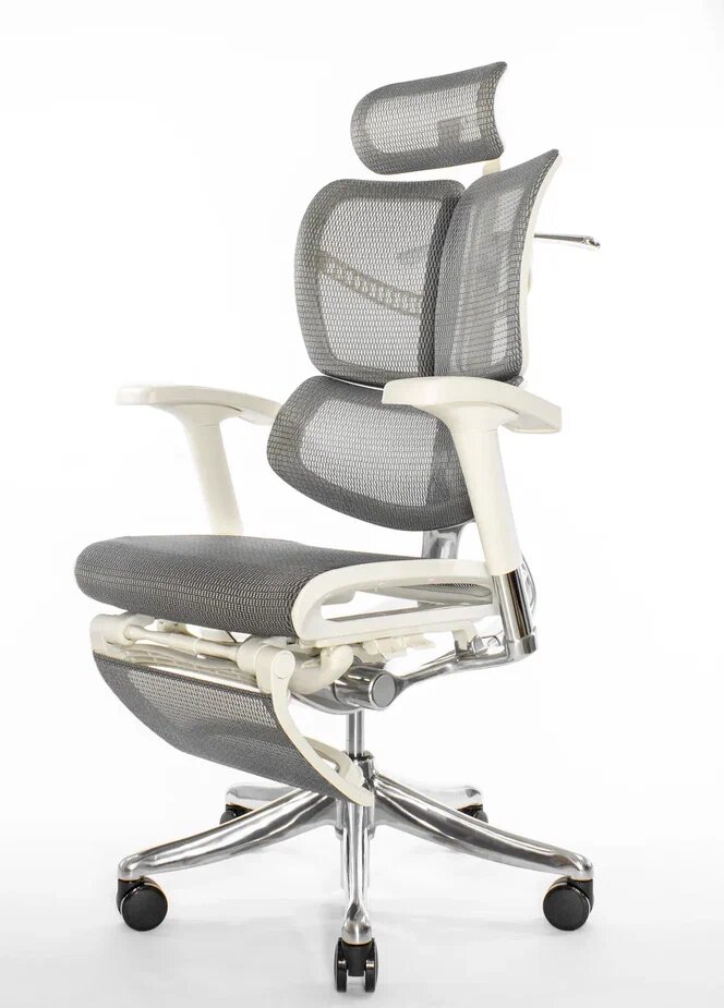 Эргономичное кресло Falto Expert 2 STAR с подножкой, сетка серая / каркас белая скала хром