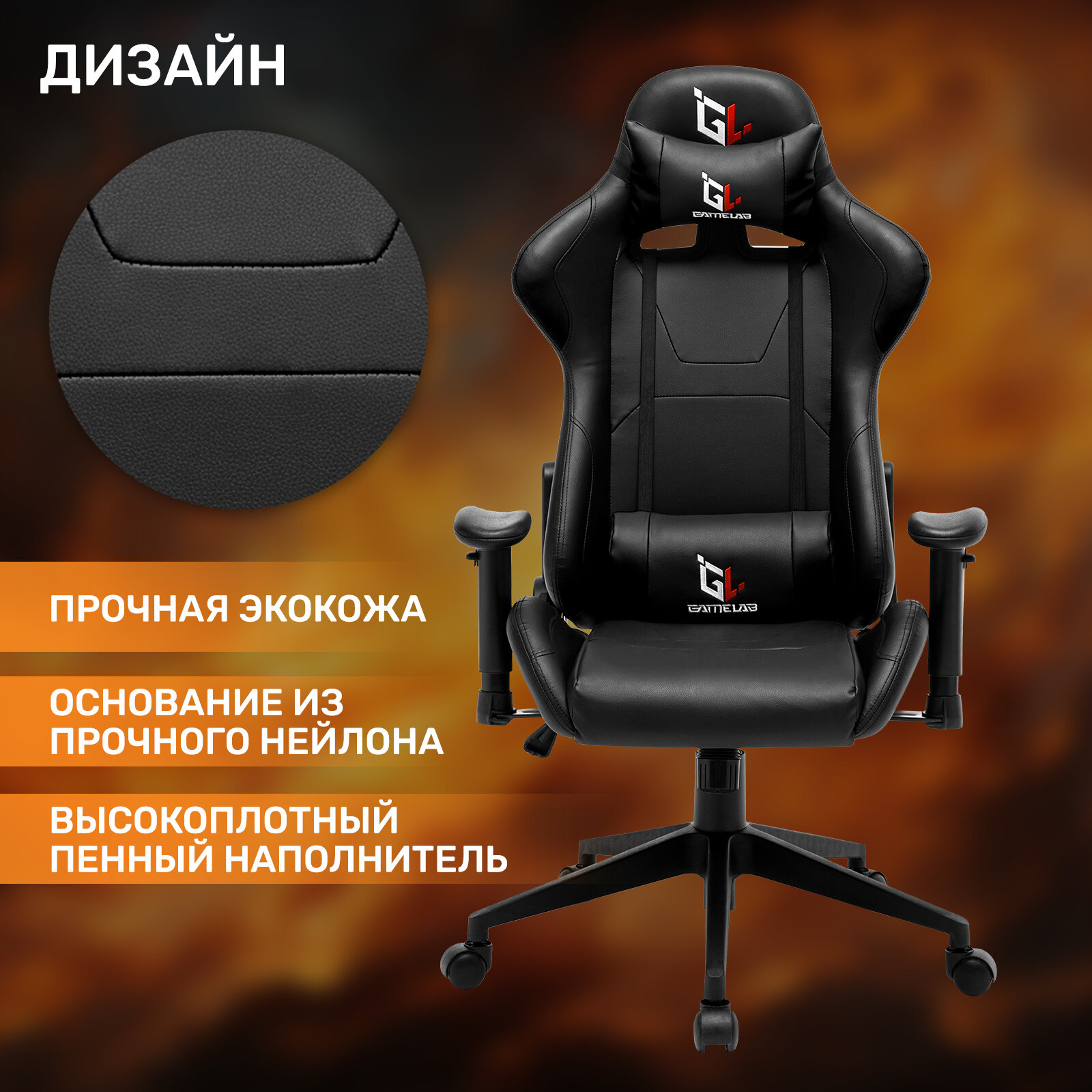 Игровое компьютерное кресло GameLab Penta отделка из эко-кожи, поясничная и шейная поддержка, высота 120-130 см черный