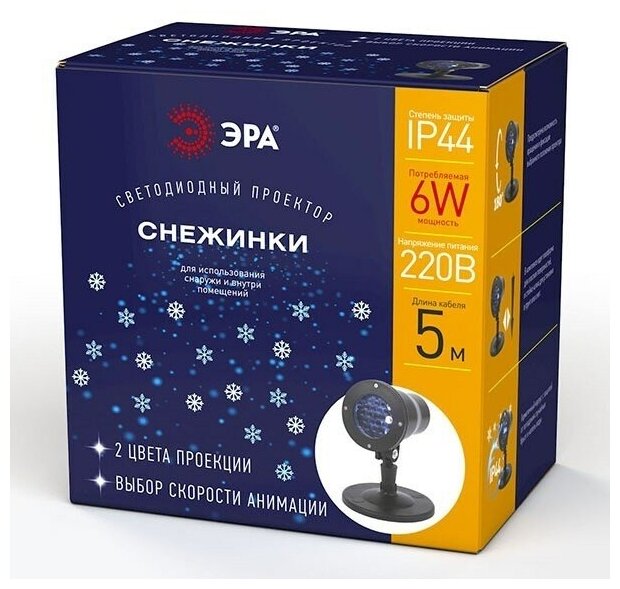 ЭРА Проектор светодиодный Снежинки 220V 6W холодный свет, мультирежим (до 5м) IP44 8954