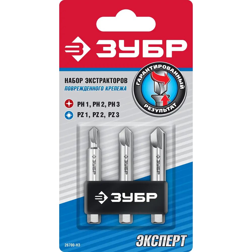 ЗУБР Набор ЗУБР "эксперт": Экстракторы поврежденного крепежа,для выкручивания крепежа с износом граней шлица до 95%,3 предм , ( 26700-H3 )