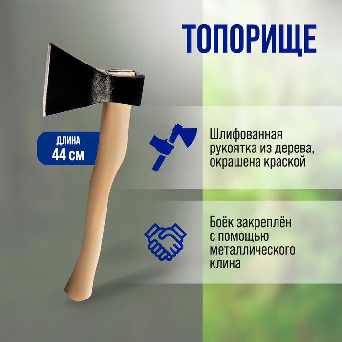 Топор хозяйственный кованый с деревянной рукояткой/ ТопАр 0,6 кг/Топорище 400 мм из березы с биозащитным составом/с порошковым покрытием/в сборе Б1