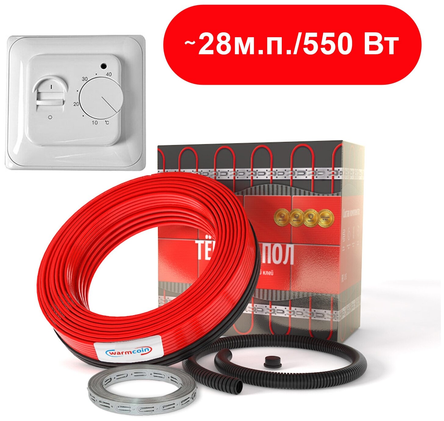 Теплый пол кабель WarmCoin POWER 550 Вт / ~28 м с терморегулятором интересное:
