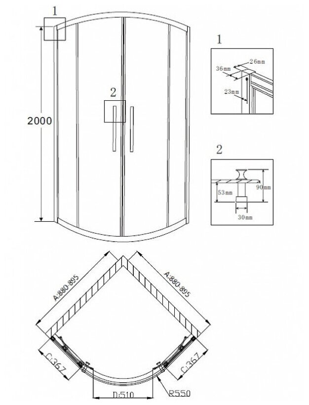 | Форма поддона | четверть круга |