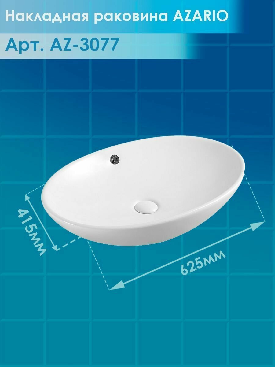 Раковина накладная Azario овальная, 150х625х415 мм, цвет белый AZ-3077