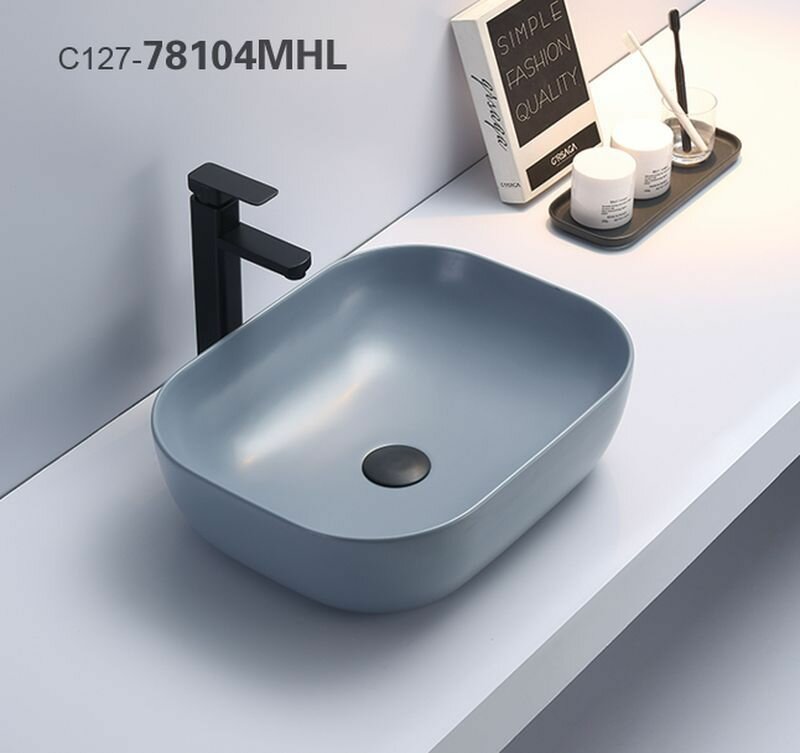 Раковина для ванной, CeramaLux 78104MHL-4, накладная, прямоугольная, с антигрязевым покрытием, без отверстия под смеситель. Гарантия 10 лет.
