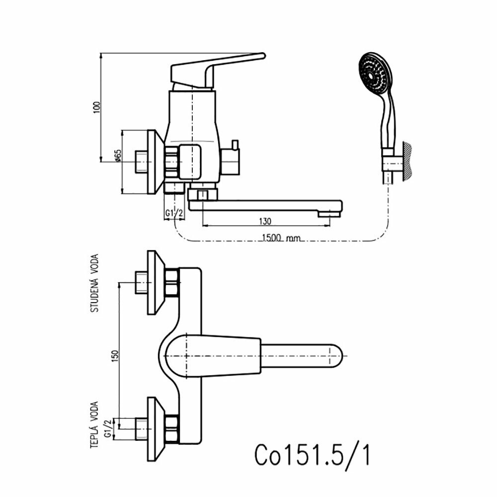 Смеситель для ванны и душа RAV Slezak Colorado средний излив с лейкой, фиксированный держатель, хром CO151.5/1