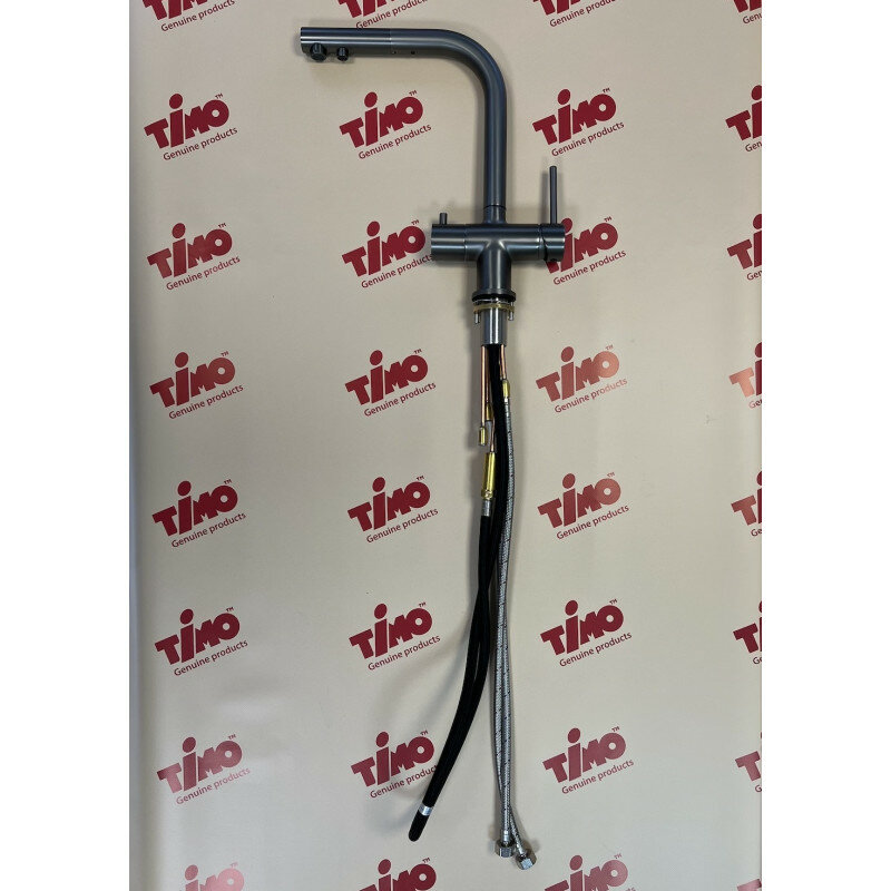Смеситель для кухни с подключением фильтра и выдвижной лейкой Timo Saona 2356/18FL черное золото серый