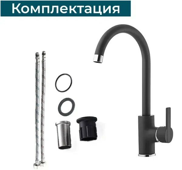 Смеситель для кухни с высоким поворотным изливом ALVEUS GENESIS TONIA G91 CARBON черный матовый