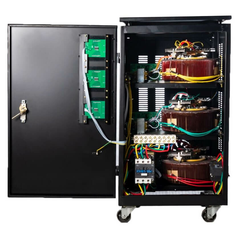 | Отзыв: | В автомастерской работают несколько станков, от 3-фазной цепи. Как только напряжение в ней падает, работать нормально на оборудовании невозможно. Пришлось покупать 60 Квт стабилизатор, который сгладил все броски напряжения сразу по всем фазам. Агрегат не маленький и довольно тяжелый, благо на колесах. Попутно стабилизатор решил и еще одну неприятную проблему перекоса фаз, что видно по индикаторам. |